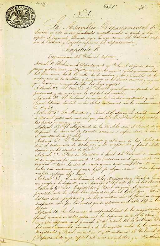Ley Orgánica del Poder Judicial, expedida por la Asamblea Departamental de Sonora, el 28 de febrero de 1844.