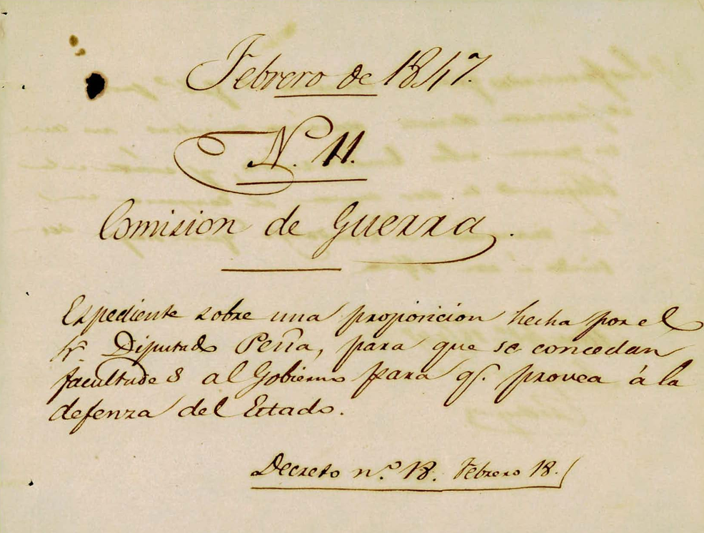 Decreto número 18, que concede facultades del Gobierno del Estado en el ramo de Guerra para que organice la defensa del Estado.