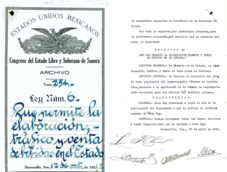Ley No 6 de 1921, Que Permite la Elaboración, Tráfico y Venta de Bebidas en el Estado.