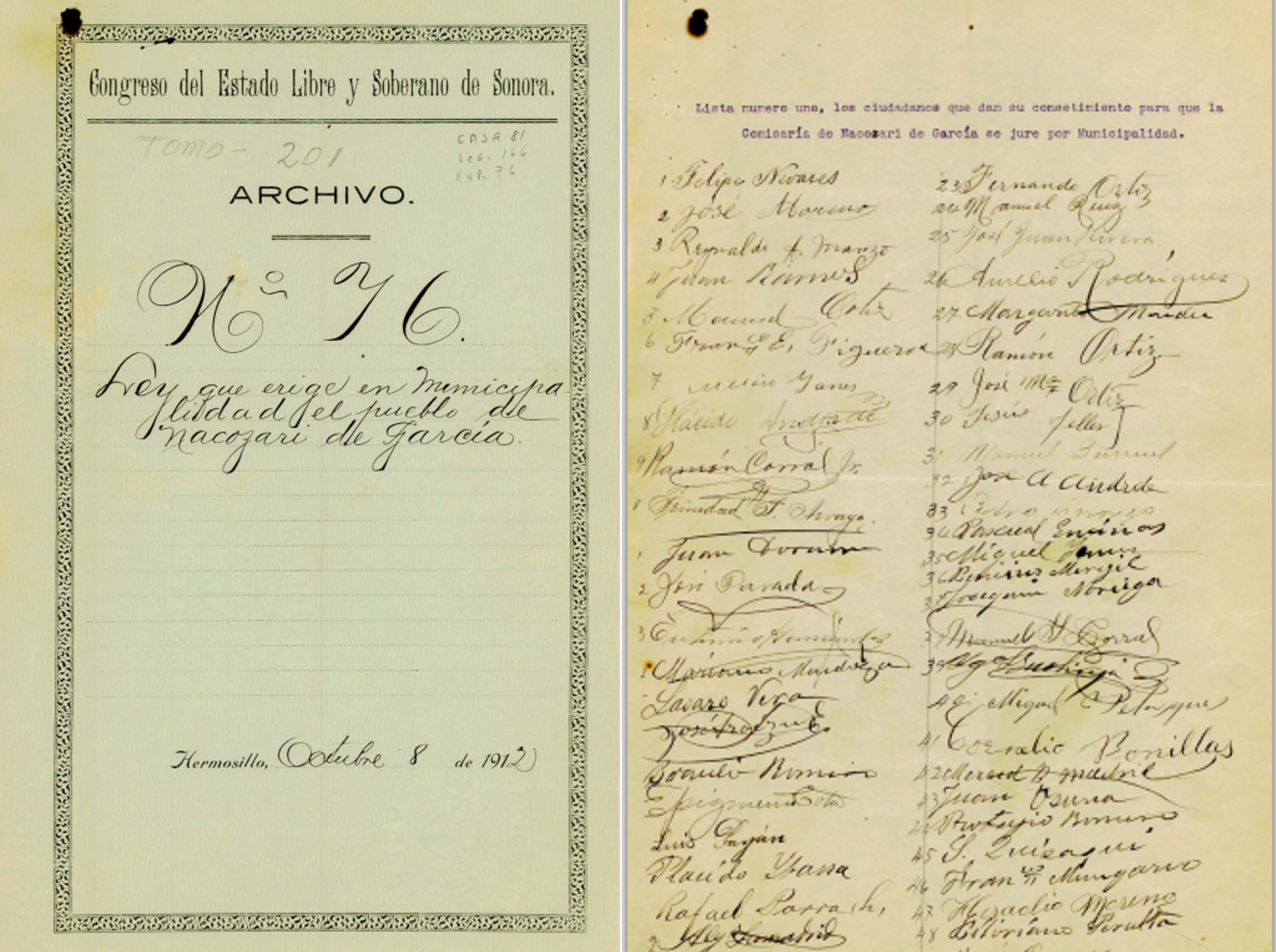 Ley No. 76, del año 1912, que Declara Municipio Nacozari de García