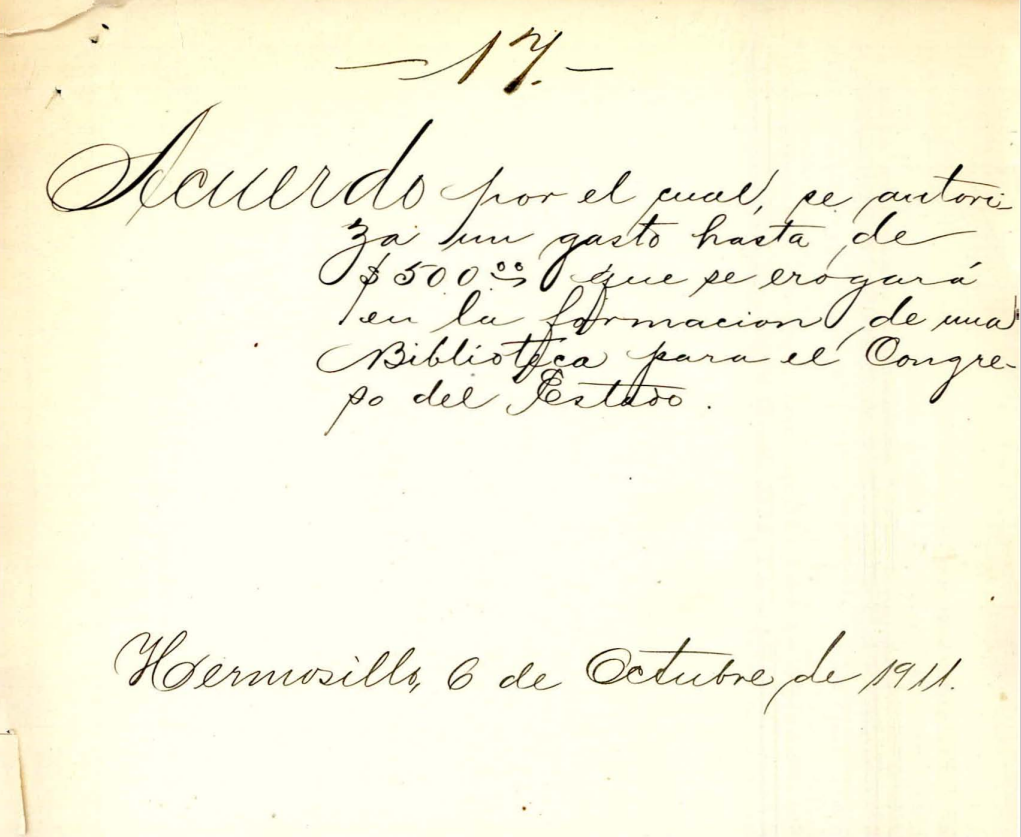 El diputado por Guaymas, Adolfo de la Huerta, creó la primera biblioteca del Congreso de Sonora.