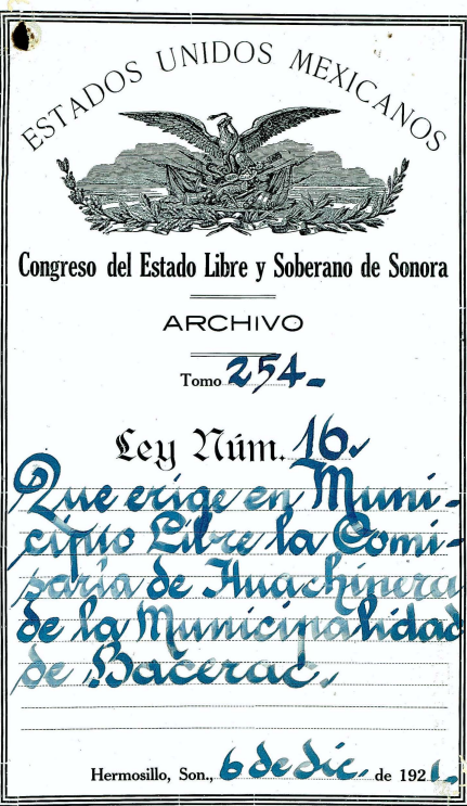 Elevación a categoría de municipalidad el mineral de Promontorios, del distrito de Álamos.